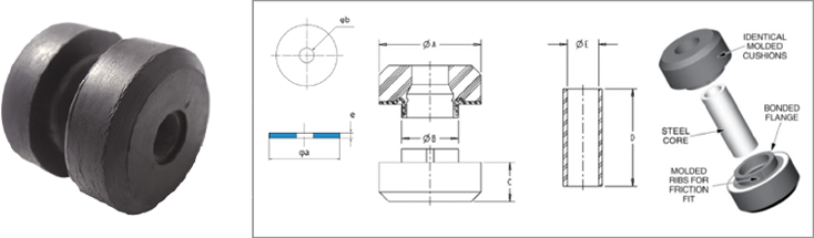 Natural rubber, bonded, cylindrically shaped.